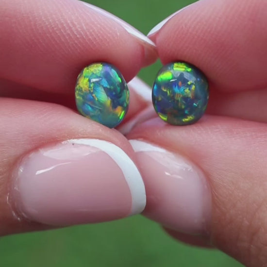3.22ct Black Opal Pair - 8.2 x 6.4 x 4.2mm