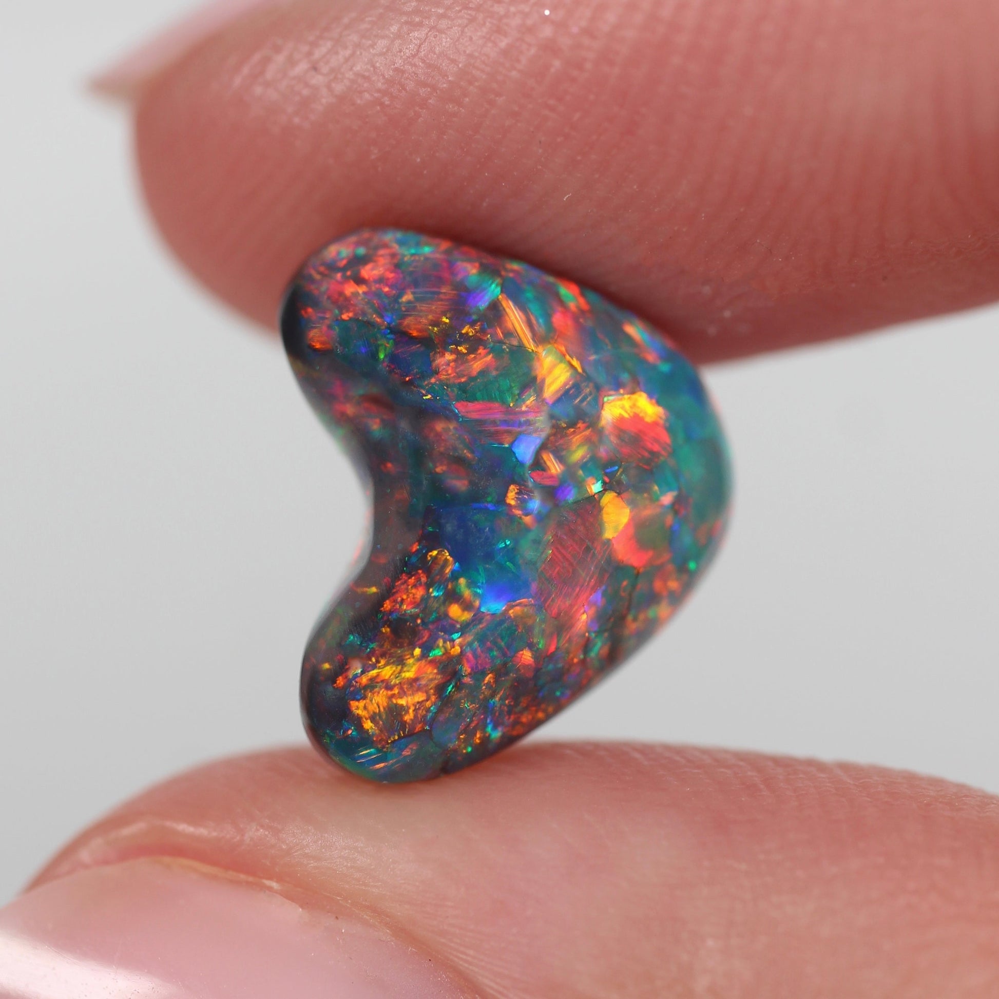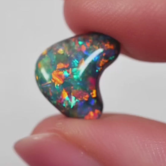 Black Opal is a form of opal where the base colour is dark grey to black. This makes the play of colour pop and adds to its value. Black opal is found in all the opal regions of Australia but is most commonly found around the Lightning Ridge opal fields. Black Opal with red play if colour is very rare and that also makes it the most valuable.
